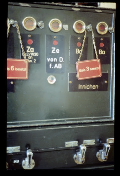 Die Freigabe der Signale erfolgte über Befehlsfelder aus der Fahrdienstleitung. Hier ist das dortige Befehlsblockwerk: