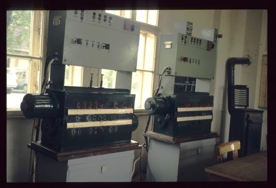 Die zwei anderen Trommelschlüsselwerke samt Signalschalterwerken sieht man auf diesem Bild – links jenes für die Gleise 3 und 5, rechts für die Gleise 1 und 2.