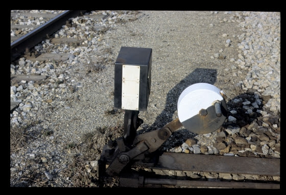 Zu diesem Einfahrsignal gab es auch ein Vorsignal, das allerdings üblicherweise nicht freigestellt wurde. Dieses Vorsignal habe ich nicht aufgenommen – man sieht aber seinen Hebel auf diesem herauskopierten, extrem vergrößerten Detail des vorletzten Bildes: