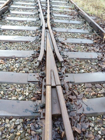 An dieser Weiche lassen sich schön die drei Phasen bei der Umstellung von Weichen mit Spitzenverschluss demonstrieren: