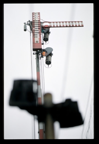 Gruppenausfahrsignal R mit Drahtnachzughebeln, Gurten, 20.2.1987