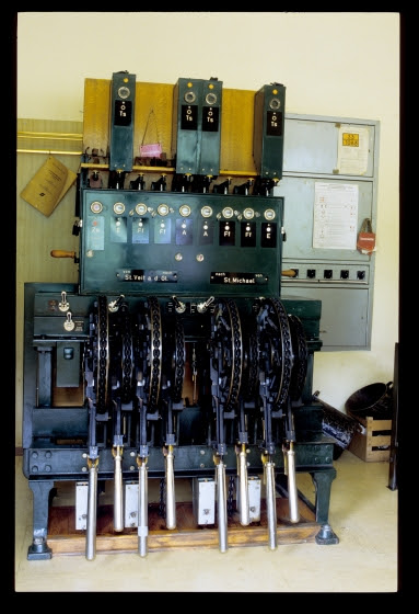 Neben dem Weichenhebel sieht man eine Knagge mit der Beschriftung "Hilfsfahrst. nach St.Veit aus Gl.2 auf Str.Gl.1". Ich nehme an, dass zum Einlegen dieser Hilfsfahrstraße die Weiche 51 verriegelt sein musste (weil sie gegen die Spitze befahren wird – siehe den Gleisplan am Signalpult auf dem ersten Bild), während bei einer Einfahrt von St.Veit auf das Gleis 2 diese Riegelung nicht nötig war (weil dabei die Weiche 51 vom Herzstück her befahren wurde). Daher würde hier das Festlegen einer "Einfahrt für Ausfahrt", wie das im Allgemeinen ja verlangt wurde, nicht die gleiche Sicherheit bieten wie diese eigene Fahrstraße: