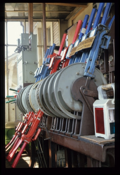 Auf dem Bild oben mit dem ganzen Stellwerk sieht man links (unterhalb des Kalenders) ein Tableau, einzelne Lampen leuchten. Mit diesem Tableau wurde das Licht des Bahnhofes gesteuert, also Gleislampen, Perron-Beleuchtung, Publikumsräume usw. Heute wird auch das alles ferngesteuert bzw. ist automatisiert.